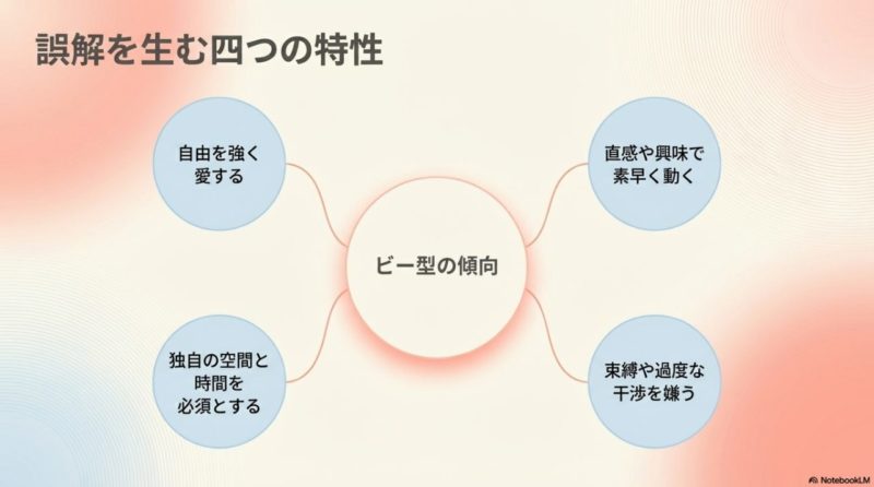 b型男性が誤解されやすいポイントは、愛情が薄いからではなく、愛情表現よりも自由の確保を優先して見せやすいことです。 ここを見誤ると、必要以上に悪く評価されます。