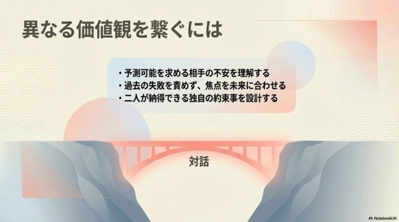 私はこの組み合わせほど、感情よりも運用ルールが効くと思っています。 連絡の仕方、家事の基準、ひとり時間の扱いなどを明文化しておくとかなり楽です。 距離感のすり合わせに悩んでいるなら、結婚後の生活ルールを決める考え方をまとめた記事も参考になります。 違いがあるからこそ、話し合いの仕組みを持てる夫婦は強いですよ。