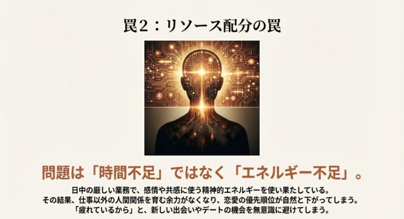 ポイント:出会いがないは、時間不足というよりエネルギー不足で起きることが多いです。  休みの日に動けないなら、あなたの根性が足りないんじゃなくて、環境が強すぎるだけかも。