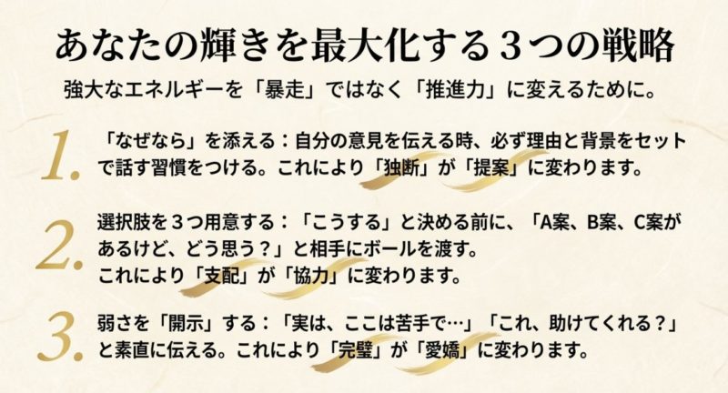 - 強さを下げるより、伝え方を柔らかくする