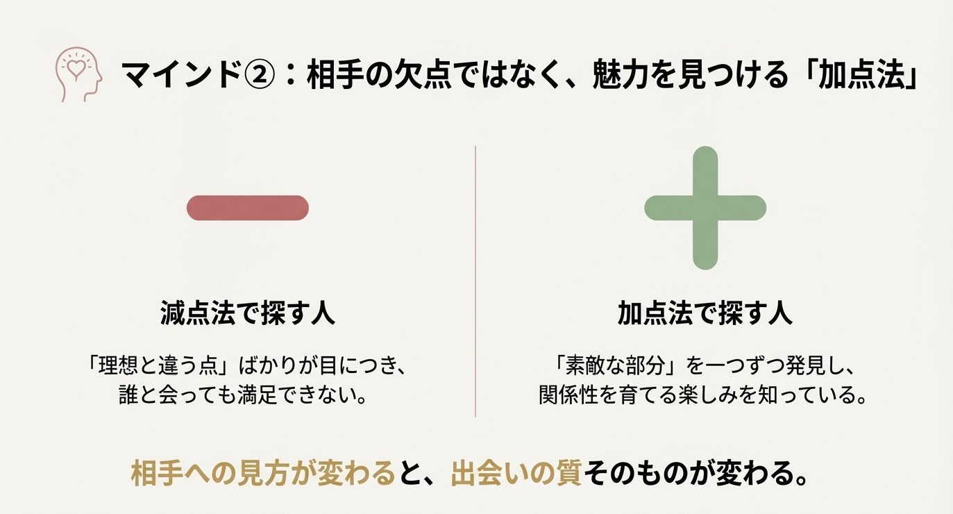 加点法 良い点を探しつつ違和感はメモ 交際に進みやすく比較が建設的
